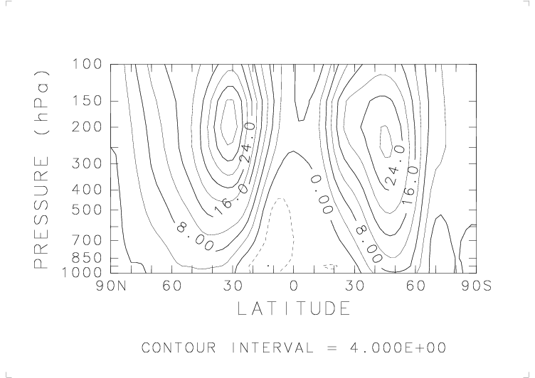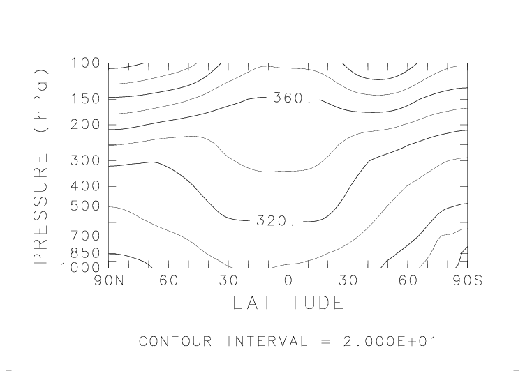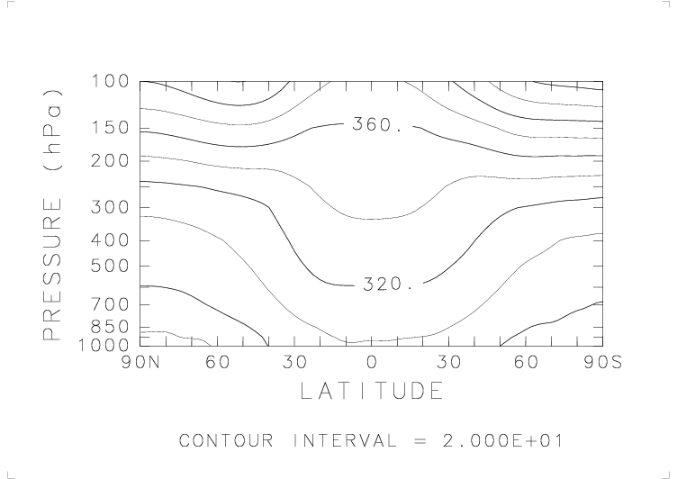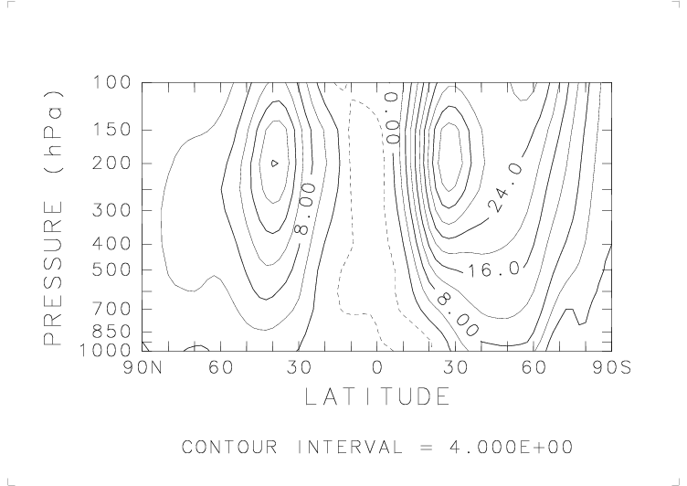 ここでは、TEM循環の絵を描くに当たって得られたいろいろな気候変数の様子について紹介します。 いろいろな教科書に載っているものから、ちょっとレアーなものまで、 合計7種類、夏(6月)と冬(12月)の2つずつをお届けいたします。 このページに対するご意見もどしどしお寄せください。よろしくお願いします。